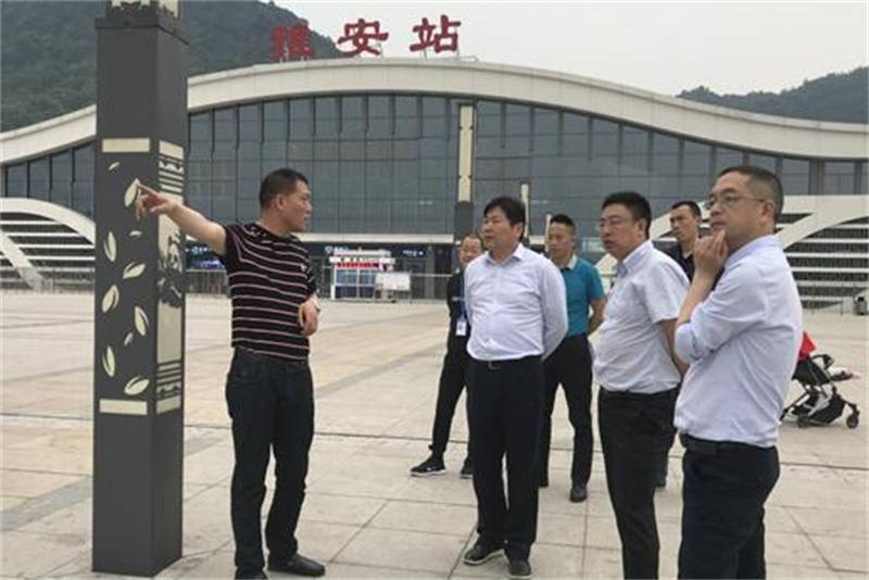 在雅安火車站站前廣場(chǎng),朱濤一行詳細(xì)了解了行李滑道建設(shè)項(xiàng)目、地下停車場(chǎng)、安全提示標(biāo)識(shí)等方面的情況,并聽(tīng)取了簡(jiǎn)智勇就相關(guān)事宜的匯報(bào)。