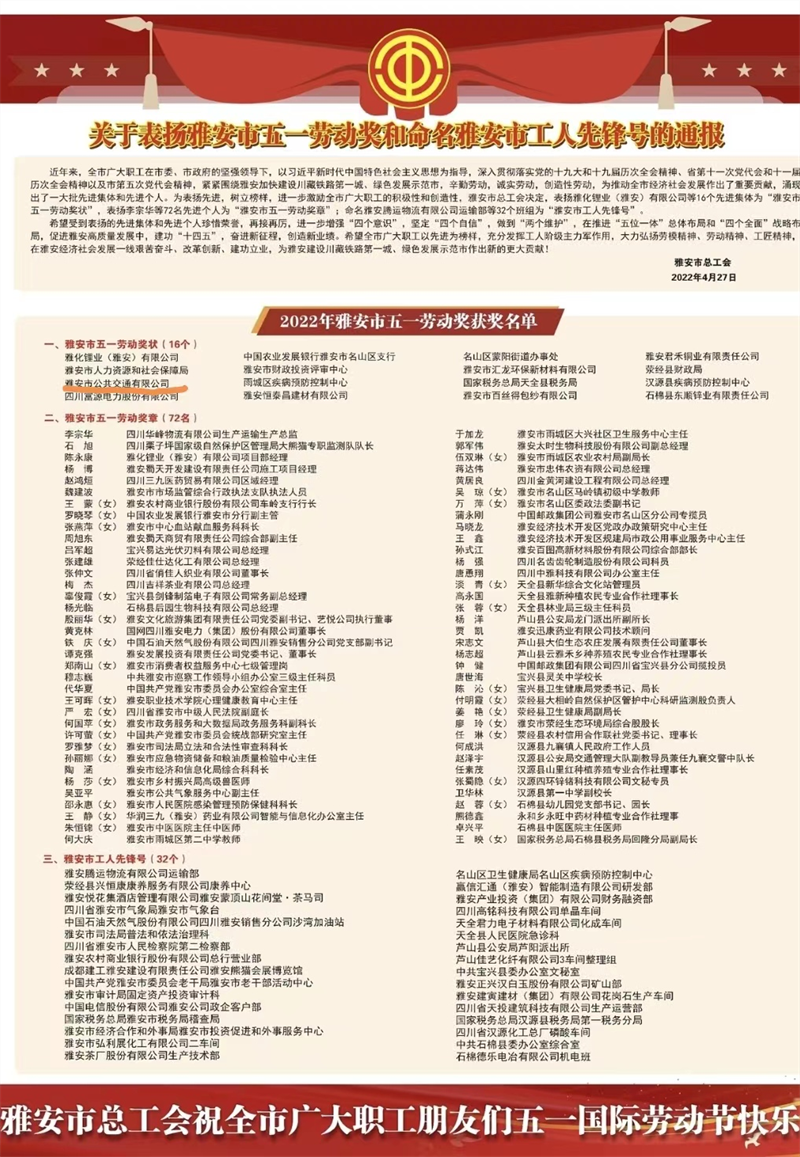 4月28日,市總工會(huì)召開(kāi)2022年雅安市慶祝“五一”國(guó)際勞動(dòng)節(jié)暨表?yè)P(yáng)大會(huì),交建集團(tuán)雅安市公共交通有限公司榮獲全市五一勞動(dòng)獎(jiǎng)狀殊榮。