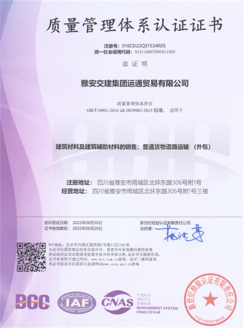 近日,經(jīng)專業(yè)認(rèn)證機(jī)構(gòu)嚴(yán)格審核,運通公司順利通過GB/T19001-2016 idt ISO9001:2015質(zhì)量管理體系標(biāo)準(zhǔn)認(rèn)證。
