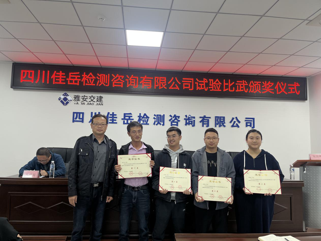11月8日,雅安交建集團(tuán)所屬四川佳岳檢測咨詢有限公司舉行頒獎(jiǎng)典禮,對(duì)第一屆試驗(yàn)檢測技能比武大賽進(jìn)行總結(jié)和表彰。