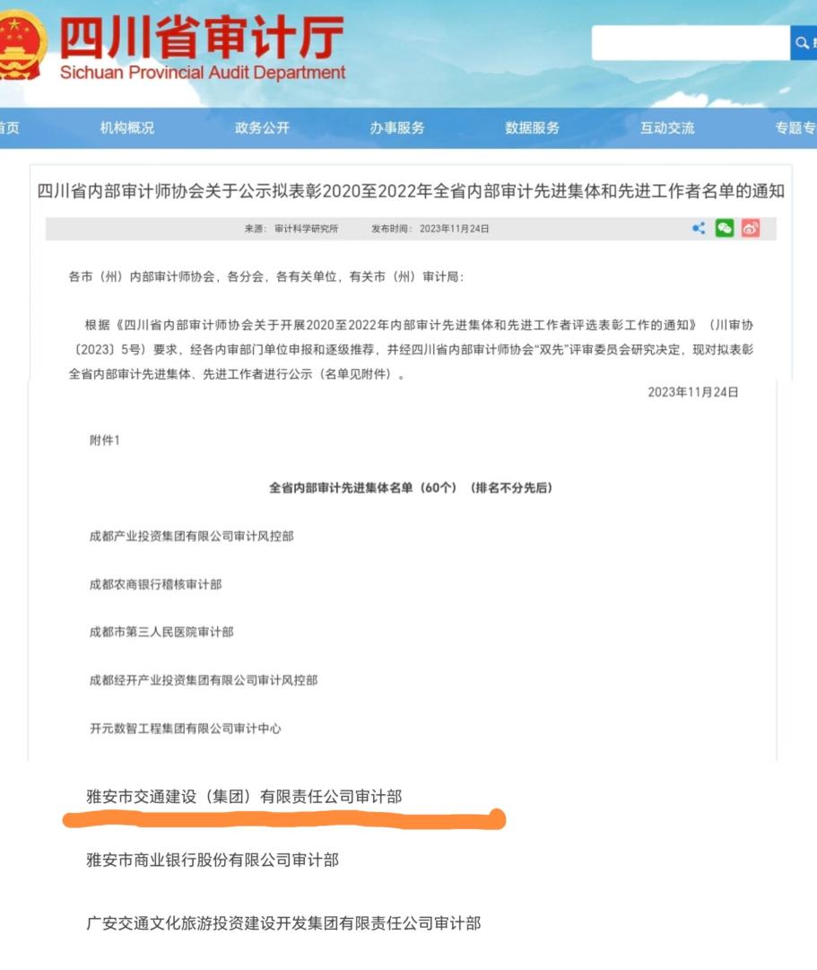 雅安交建集團(tuán)黨委高度重視內(nèi)部審計工作,公司成立獨(dú)立內(nèi)審機(jī)構(gòu),由集團(tuán)黨委書記、董事長直接分管,按照內(nèi)審計劃和黨委、董事會安排,獨(dú)立開展工作,并定期向黨委、董事會匯報內(nèi)審工作開展情況。近年來,公司已建立《內(nèi)部審計工作管理辦法》《經(jīng)濟(jì)責(zé)任審計實施細(xì)則》等內(nèi)部審計制度,通過全面審計、專項審計和“1+N”內(nèi)部監(jiān)督檢查工作機(jī)制,規(guī)范集團(tuán)及子公司制度建設(shè),提升管理水平,助力集團(tuán)創(chuàng)建“千億國企,品質(zhì)交建”。