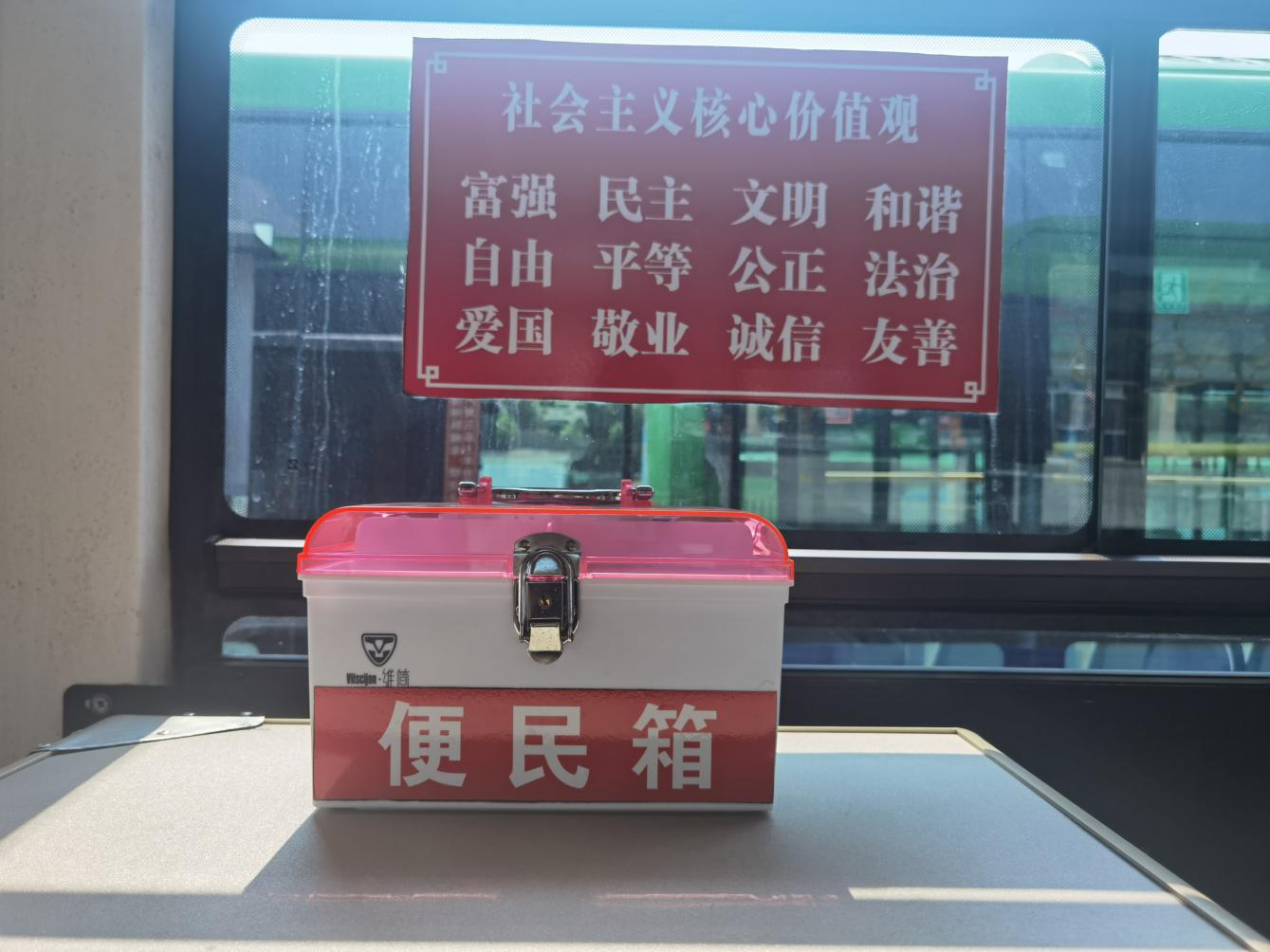 便民箱位于駕駛室正后方,箱內包括口罩、繃帶、創(chuàng)可貼、棉簽、碘伏及速效救心丸等物品,如乘客乘車途中有需要的,可自行領取使用;愛心雨傘放置在車輛上車門處,每車3把,供雨天乘客借用歸還后循環(huán)使用。