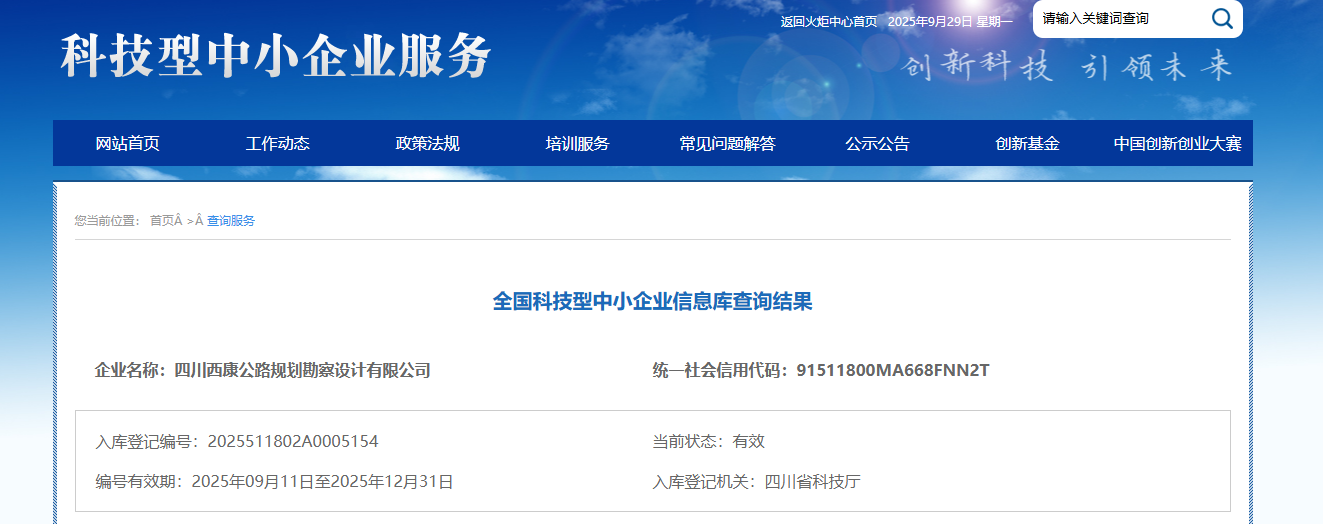 近日,四川省科學(xué)技術(shù)廳公布本年度第二批科技型中小企業(yè)名單,四川西康公路規(guī)劃勘察設(shè)計(jì)有限公司再獲“科技型中小企業(yè)”認(rèn)定,這一榮譽(yù)體現(xiàn)了公司在科技創(chuàng)新發(fā)展道路上的持續(xù)進(jìn)步與實(shí)力積淀。