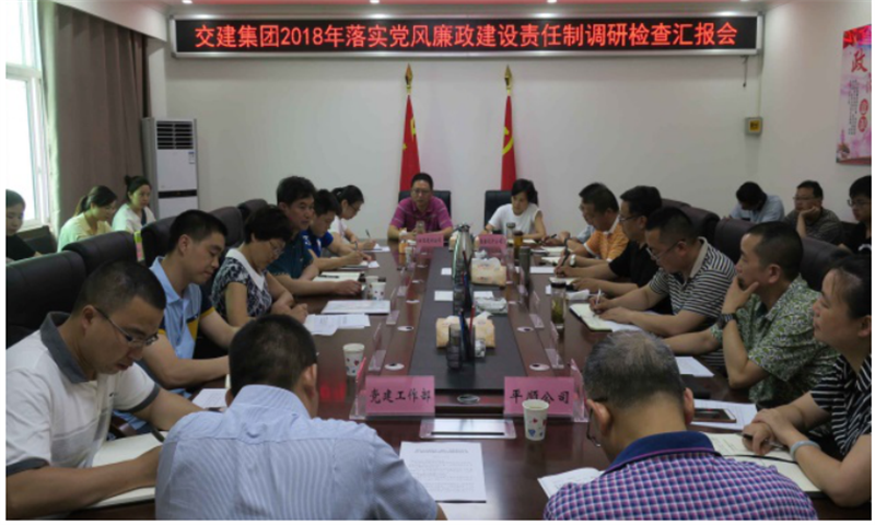 調(diào)研組一行首先聽取了交建集團(tuán)2018年落實(shí)黨風(fēng)廉政建設(shè)責(zé)任制工作情況匯報。交建集團(tuán)黨委書記、董事長漆家華指出,交建集團(tuán)組建以來,堅持把黨風(fēng)廉潔建設(shè)貫穿于生產(chǎn)經(jīng)營活動中,攻堅克難,跳起摸高,出色完成市委市政府安排的重點(diǎn)工作,搶抓機(jī)遇,乘勢而上,積極謀求企業(yè)自身發(fā)展,黨風(fēng)廉政建設(shè)持續(xù)加強(qiáng),為企業(yè)改革發(fā)展提供了堅強(qiáng)的紀(jì)律保障。