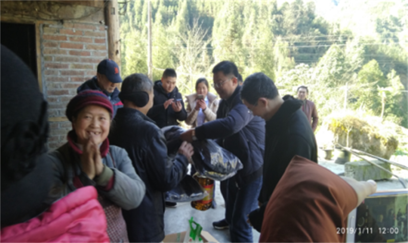 1月10日、11日,公司班子一行通過(guò)集中發(fā)放慰問(wèn)品和走訪慰問(wèn)貧困戶代表的方式,先后對(duì)名山區(qū)車(chē)嶺鎮(zhèn)石堰村、蘆山縣大川鎮(zhèn)快樂(lè)村開(kāi)展慰問(wèn),為兩個(gè)村的159戶建檔立卡貧困戶、貧困老黨員們送上了大米、清油、面粉、掛面、愛(ài)心棉衣等慰問(wèn)物品,將愛(ài)心傳達(dá)給每一位困難群眾的同時(shí),每到一處,公司領(lǐng)導(dǎo)們都耐心細(xì)致的和貧困戶促膝交談,關(guān)心其家庭和收入情況,詳細(xì)了解其脫貧情況,并介紹國(guó)家扶貧政策、傳達(dá)黨委政府對(duì)每戶貧困戶的關(guān)心和掛念,引導(dǎo)貧困戶既要感恩黨和政府,又要學(xué)會(huì)自力更生,鼓勵(lì)他們一定要樹(shù)立樂(lè)觀健康心態(tài),克服困難,用勤勞的雙手早日致富奔康。