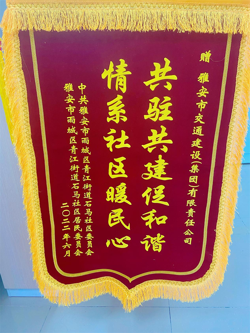 6月29日,雅安市交建集團作為石馬社區(qū)結(jié)對共建先進單位,受邀參加了中共雅安市雨城區(qū)青江街道石馬社區(qū)工作委員會組織召開的慶祝建黨101周年大會暨2022年度先進表彰大會,石馬社區(qū)黨委書記周麗娟同志為交建集團贈送“情系社區(qū)解難事 共駐共建促和諧”錦旗。