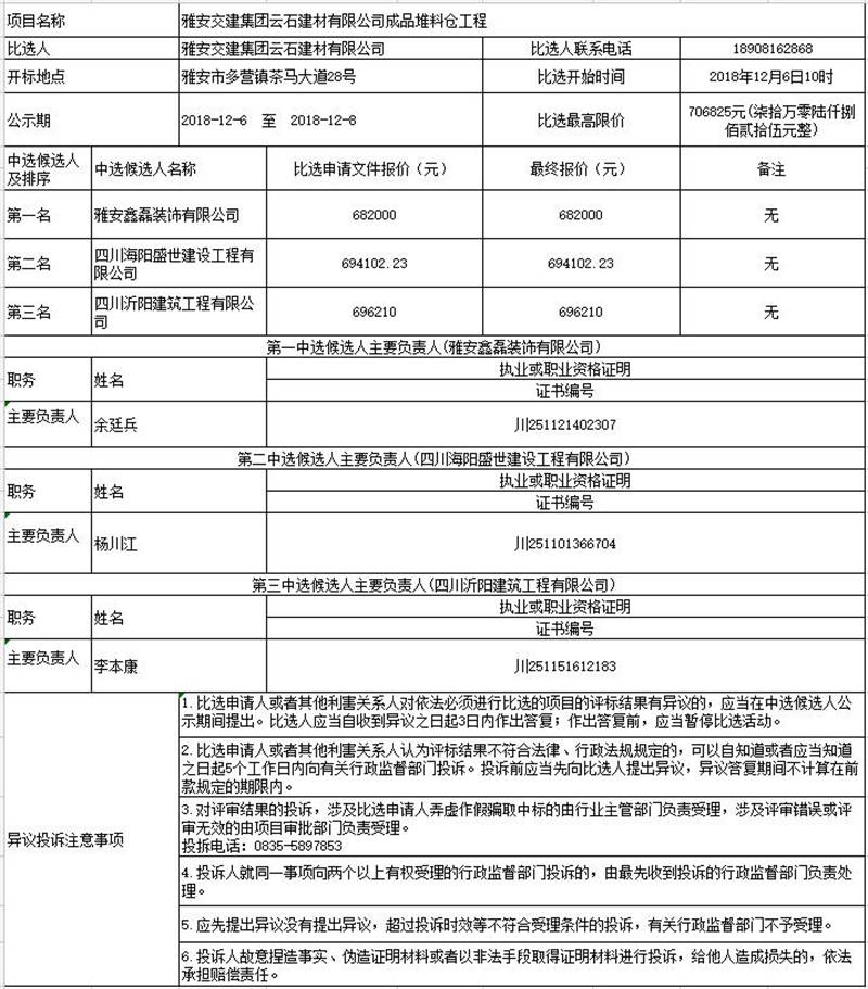 雅安交建集團云石建材有限公司成品堆料倉工程比選公示