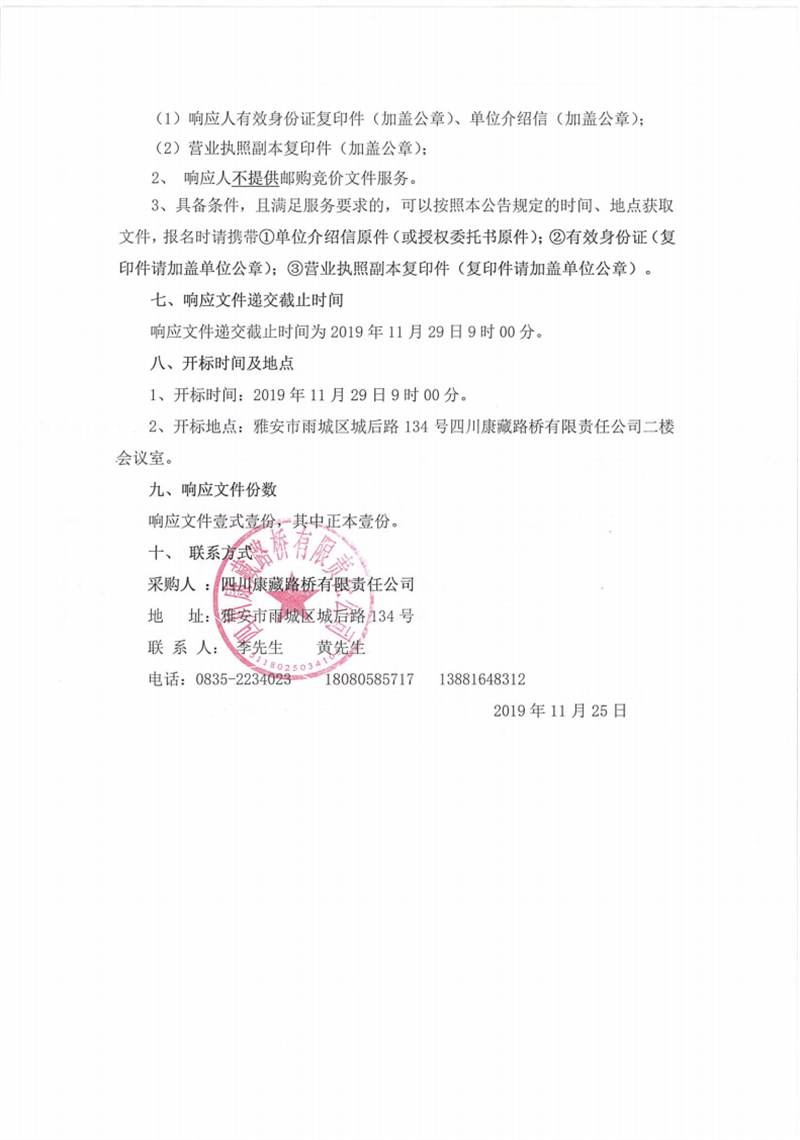 四川康藏路橋有限責(zé)任公司蘆山縣龍門、大川等8個鄉(xiāng)鎮(zhèn)基礎(chǔ)設(shè)施恢復(fù)提升工程項目施工勞務(wù)競價公告