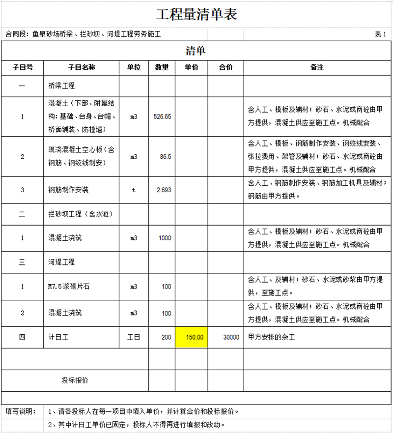 魚泉砂場橋梁、攔砂壩、河堤工程勞務(wù)施工招標(biāo)公告