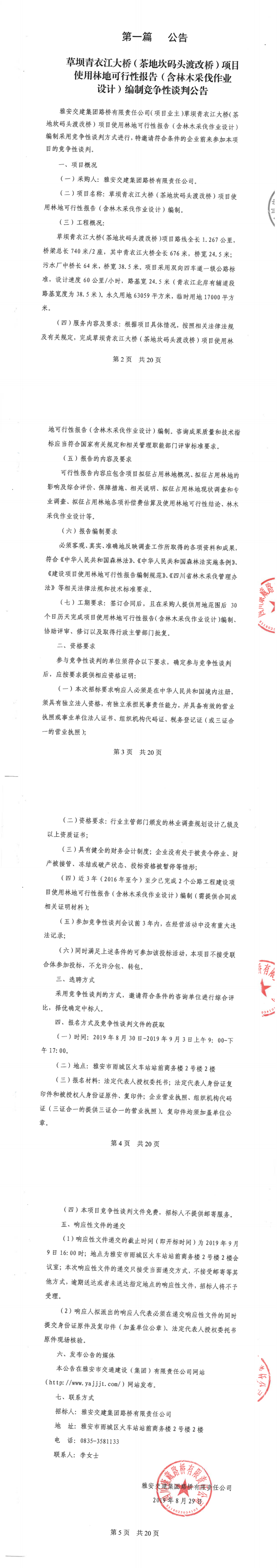 雅安交建集團(tuán)路橋有限責(zé)任公司草壩青衣江大橋(茶地坎碼頭渡改橋)使用林地可行性報告(含林木采伐作業(yè)設(shè)計)編制競爭性談判公告