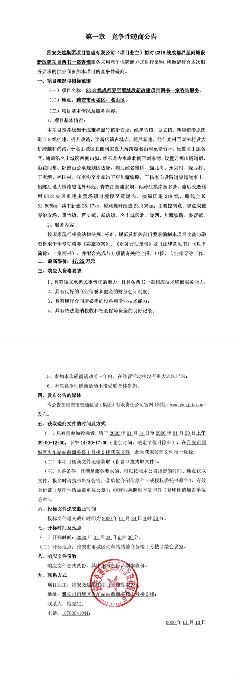 雅安交建集團(tuán)項(xiàng)目管理有限公司G318線成都界至雨城段新改建項(xiàng)目勘測(cè)定界服務(wù)競(jìng)爭(zhēng)性磋商公告