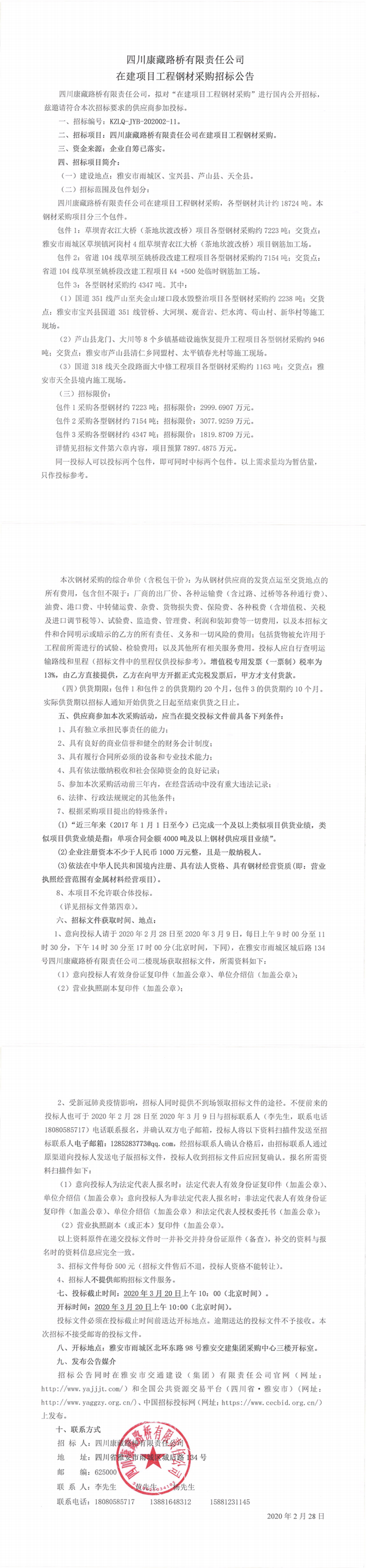 四川康藏路橋有限責(zé)任公司在建項目工程鋼材采購招標(biāo)公告