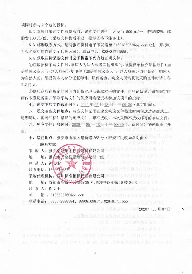 雅安交建集團丹石建材有限公司三、四號車間起重機采購項目流標公示