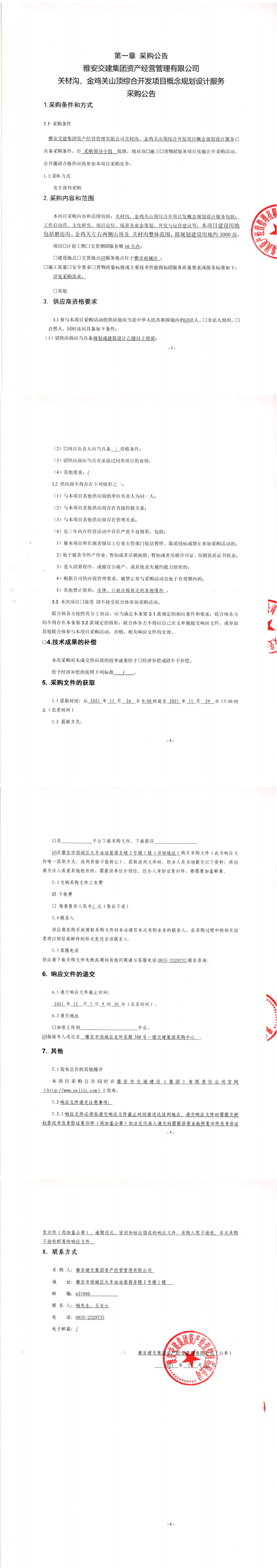 雅安交建集團(tuán)資產(chǎn)經(jīng)營(yíng)管理有限公司關(guān)材溝、金雞關(guān)山頂綜合開發(fā)項(xiàng)目概念規(guī)劃設(shè)計(jì)服務(wù)采購公告
