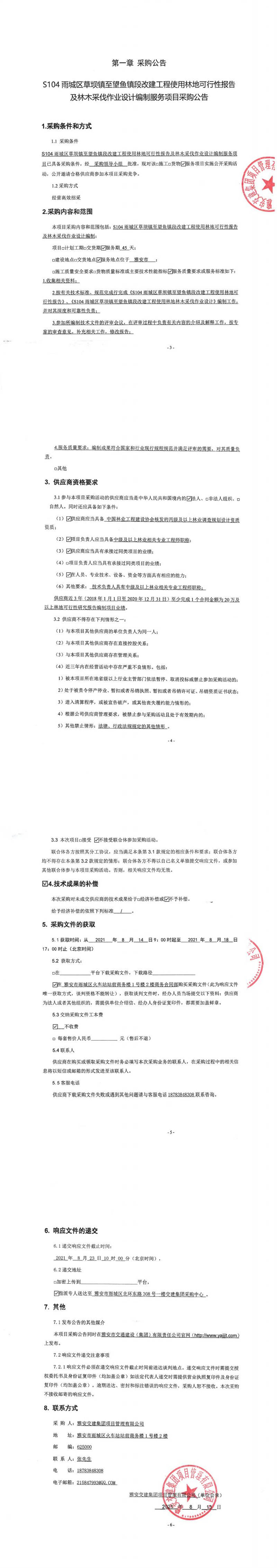 雅安交建集團(tuán)項(xiàng)目管理有限公司S104雨城區(qū)草壩鎮(zhèn)至望魚鎮(zhèn)段改建工程使用林地可行性報(bào)告及林木采伐作業(yè)設(shè)計(jì)編制服務(wù)項(xiàng)目采購(gòu)公告