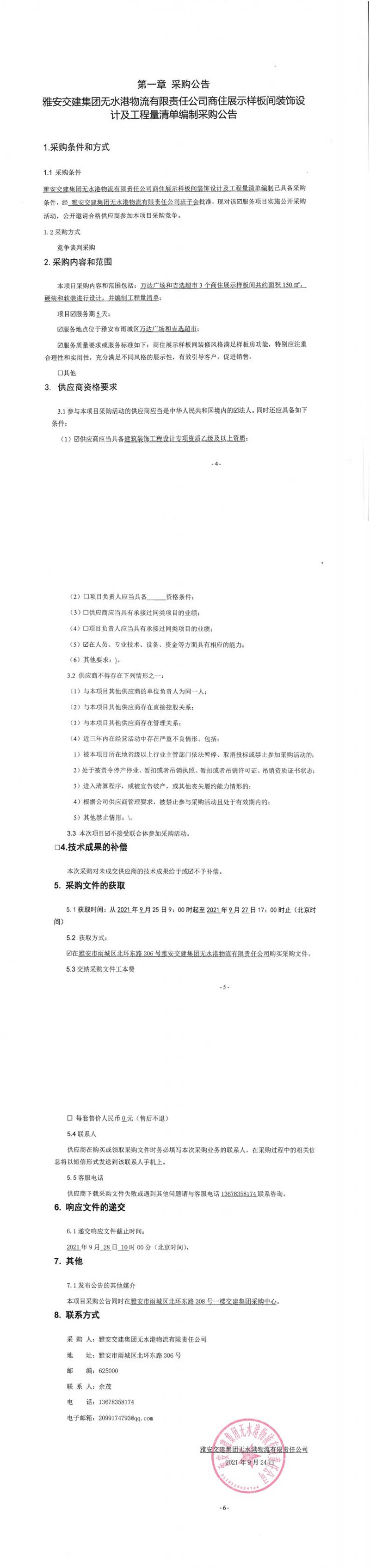 雅安交建集團(tuán)無水港物流有限責(zé)任公司商住展示樣板間裝飾設(shè)計(jì)及工程量清單編制采購(gòu)公告