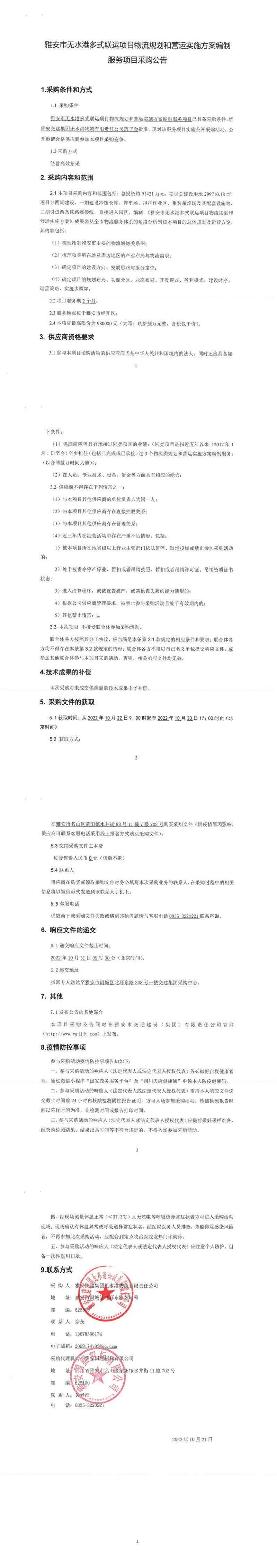 雅安交建集團(tuán)無水港物流有限責(zé)任公司雅安市無水港多式聯(lián)運(yùn)項(xiàng)目物流規(guī)劃和營(yíng)運(yùn)實(shí)施方案編制服務(wù)項(xiàng)目采購公告