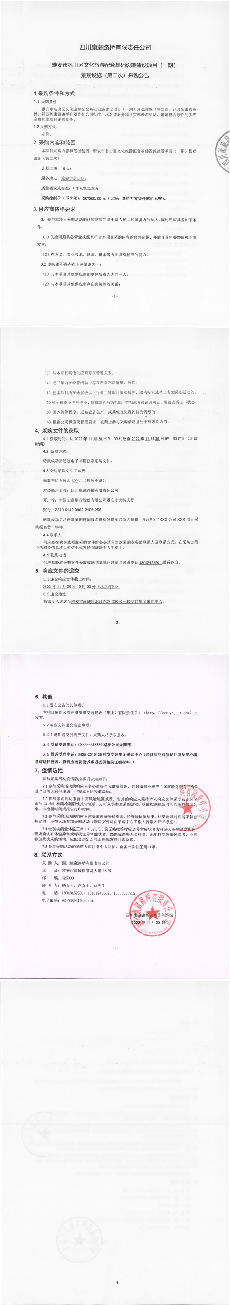 四川康藏路橋有限責任公司雅安市名山區(qū)文化旅游配套基礎(chǔ)設(shè)施建設(shè)項目(一期)景觀設(shè)施(第二次)采購公告