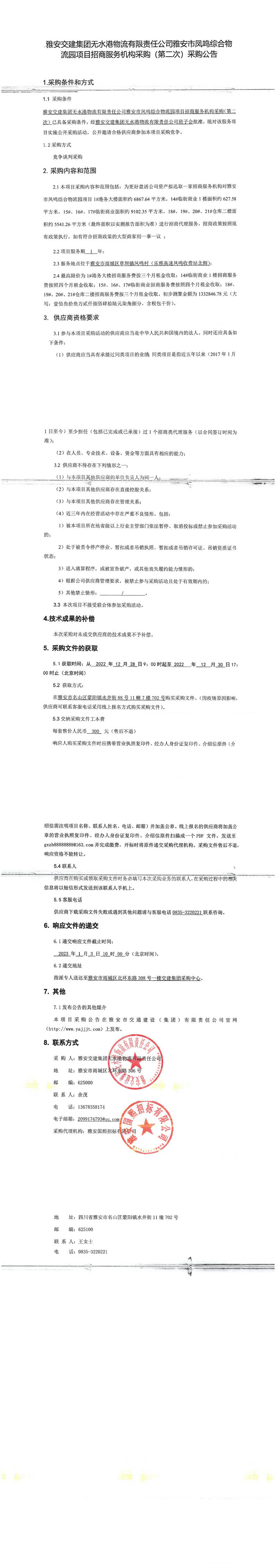 雅安交建集團無水港物流有限責任公司雅安市鳳鳴綜合物流園項目招商服務機構(gòu)采購(第二次)采購公告