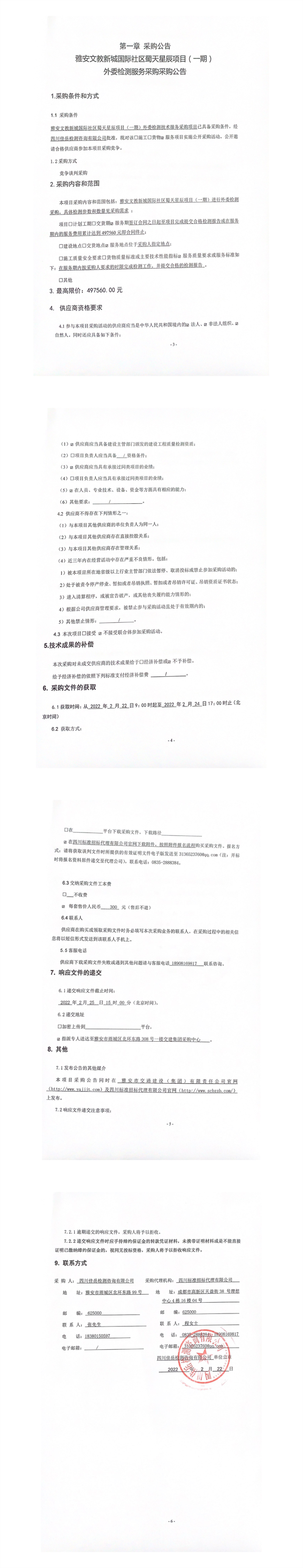 四川佳岳檢測咨詢有限公司雅安文教新城國際社區(qū)蜀天星辰項(xiàng)目(一期)外委檢測服務(wù)采購采購公告