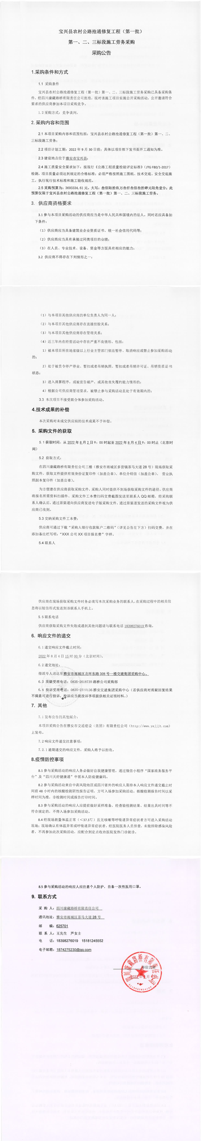四川康藏路橋有限責任公司寶興縣農(nóng)村公路搶通修復(fù)工程(第一批)第一、二、三標段施工勞務(wù)采購采購公告