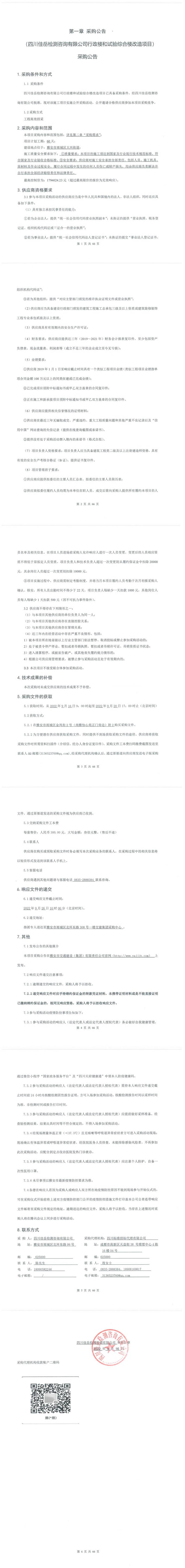 四川佳岳檢測(cè)咨詢有限公司行政樓和試驗(yàn)綜合樓改造項(xiàng)目采購公告