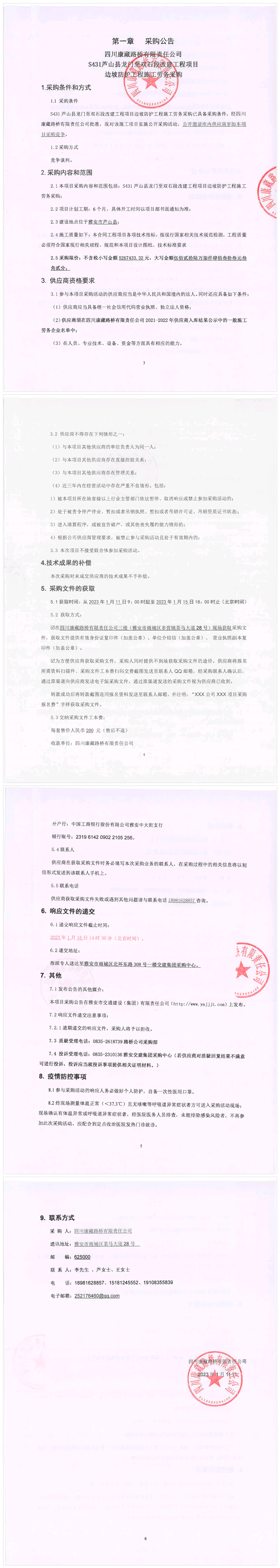 四川康藏路橋有限責(zé)任公司S431蘆山縣龍門至雙石段改建工程項目邊坡防護(hù)工程施工勞務(wù)采購競爭談判結(jié)果公示