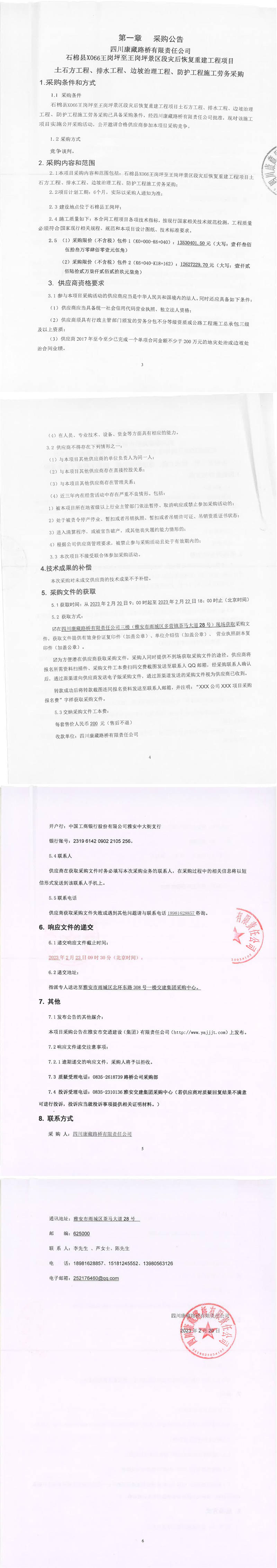 四川康藏路橋有限責任公司石棉縣X066王崗坪至王崗坪景區(qū)段災后恢復重建工程項目土石方工程、排水工程、邊坡治理工程、防護工程施工勞務采購公告