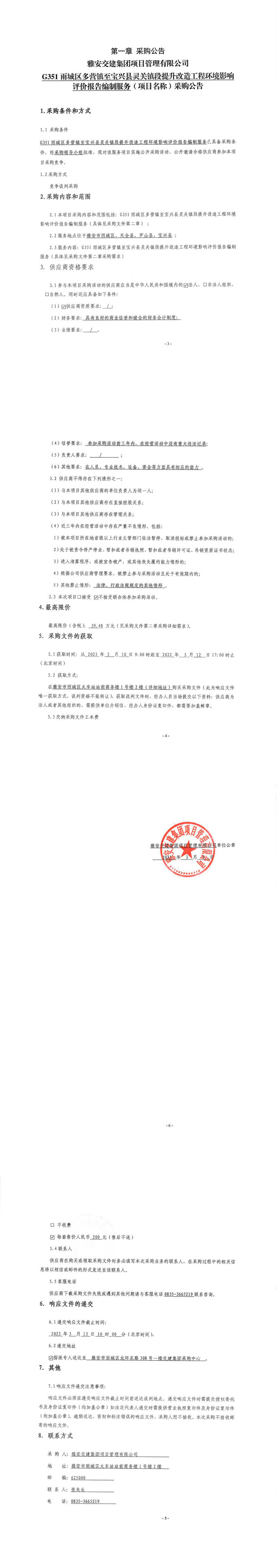 雅安交建集團(tuán)項(xiàng)目管理有限公司G351雨城區(qū)多營(yíng)鎮(zhèn)至寶興縣靈關(guān)鎮(zhèn)段提升改造工程環(huán)境影響評(píng)價(jià)報(bào)告編制服務(wù)(項(xiàng)目名稱)采購公告