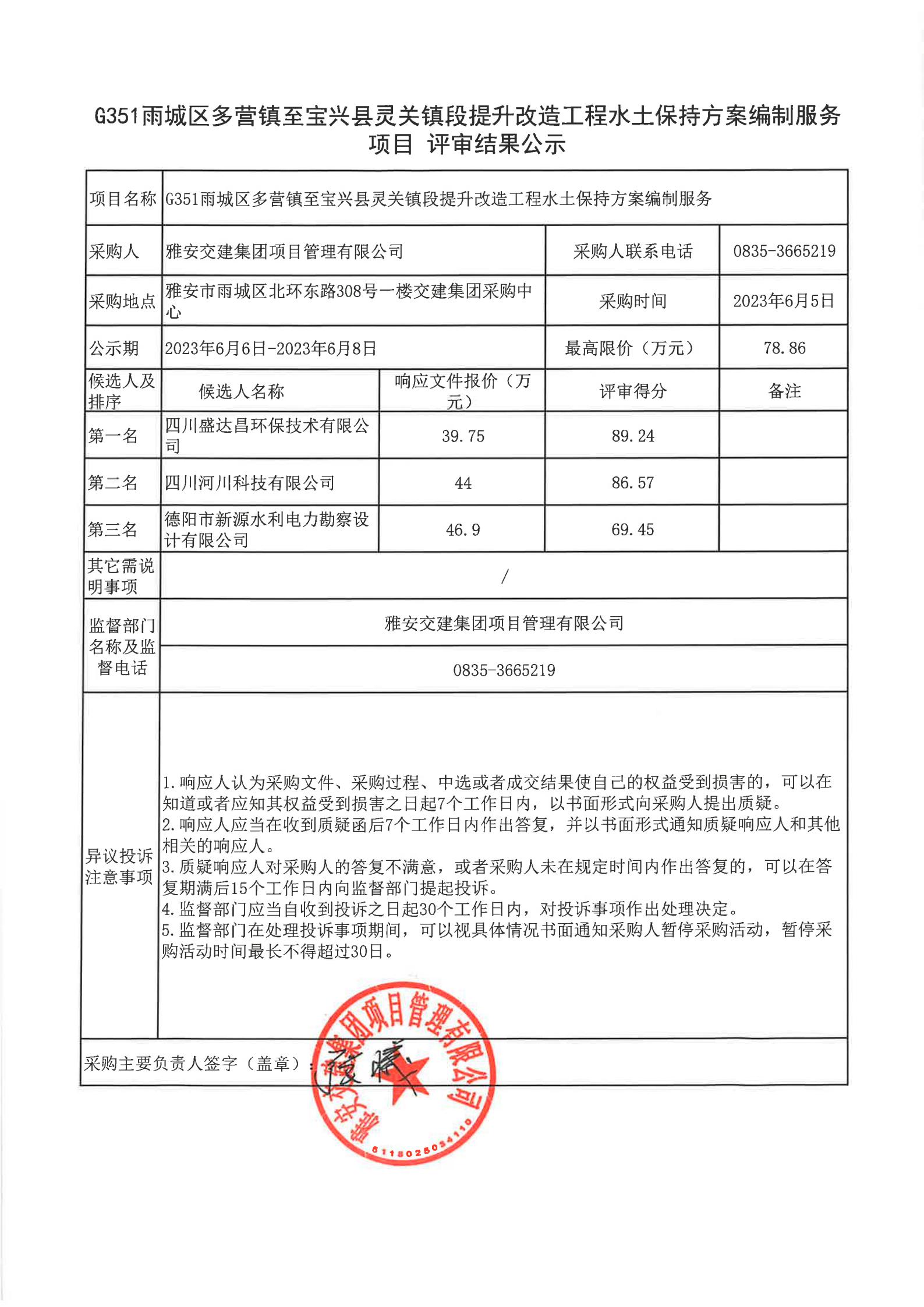雅安交建集團(tuán)項(xiàng)目管理有限公司G351雨城區(qū)多營(yíng)鎮(zhèn)至寶興縣靈關(guān)鎮(zhèn)段提升改造工程水土保持方案編制服務(wù)項(xiàng)目評(píng)審結(jié)果公示