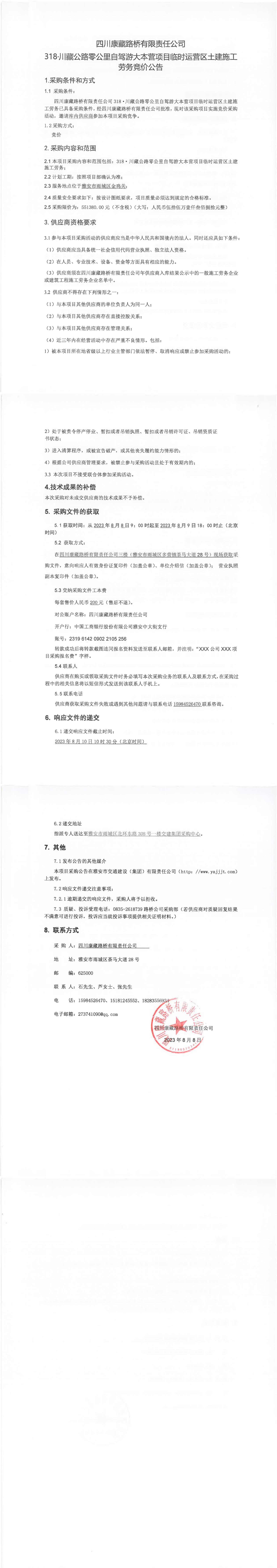 四川康藏路橋有限責(zé)任公司318·川藏公路零公里自駕游大本營項(xiàng)目臨時運(yùn)營區(qū)土建施工勞務(wù)競價公告