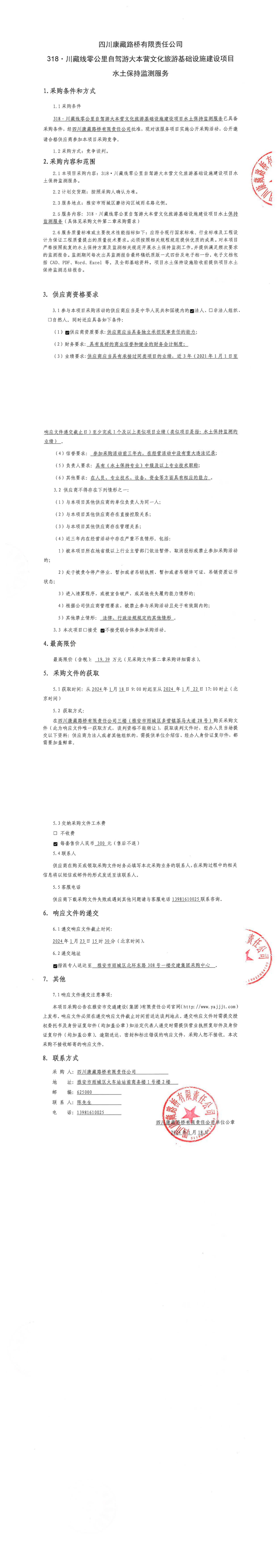 四川康藏路橋有限責(zé)任公司318·川藏線零公里自駕游大本營文化旅游基礎(chǔ)設(shè)施建設(shè)項(xiàng)目水土保持監(jiān)測服務(wù)采購公告