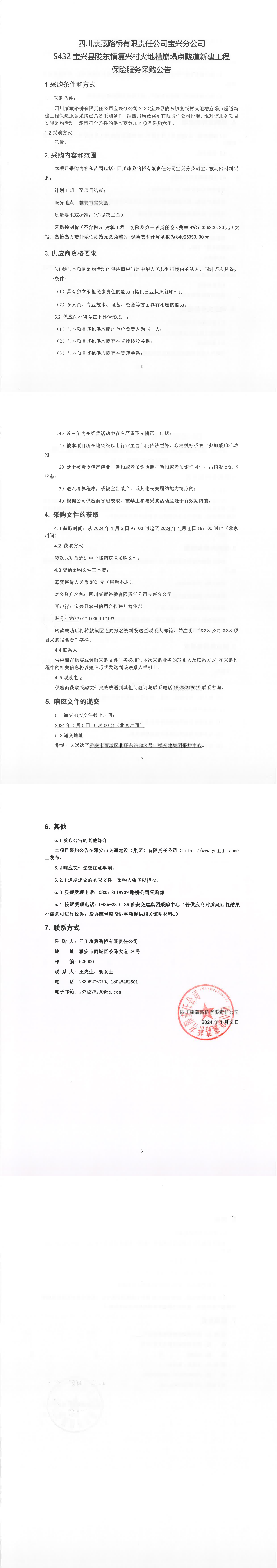 四川康藏路橋有限責(zé)任公司寶興分公司S432寶興縣隴東鎮(zhèn)復(fù)興村火地槽崩塌點隧道新建工程保險服務(wù)采購公告