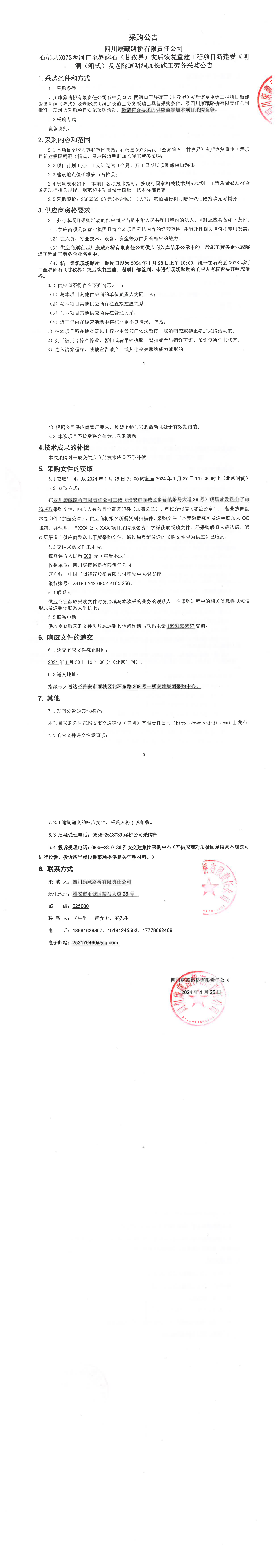 四川康藏路橋有限責(zé)任公司國道318名山區(qū)黑竹(成都界)至雨城區(qū)多營段改建工程三標(biāo)段監(jiān)控中心材料采購(第二次)采購公告