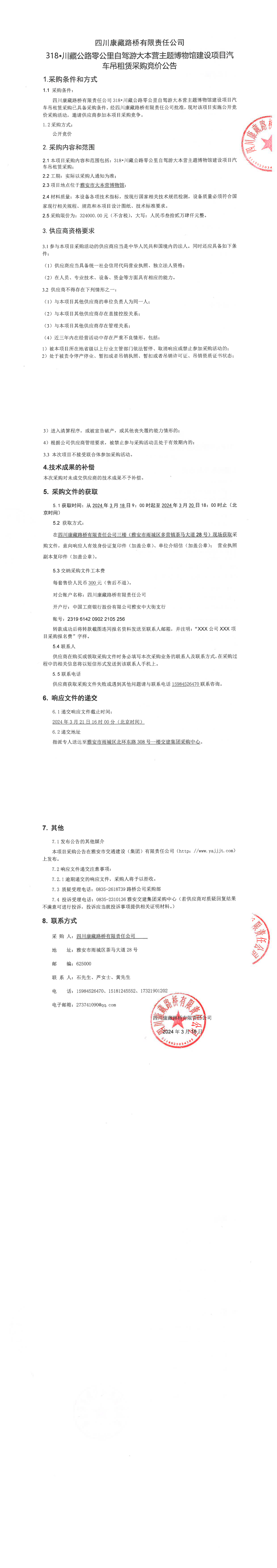 四川康藏路橋有限責(zé)任公司318·川藏公路零公里自駕游大本營文化旅游基礎(chǔ)設(shè)施建設(shè)項(xiàng)目文明環(huán)保設(shè)施、設(shè)備采購及安裝競價公告