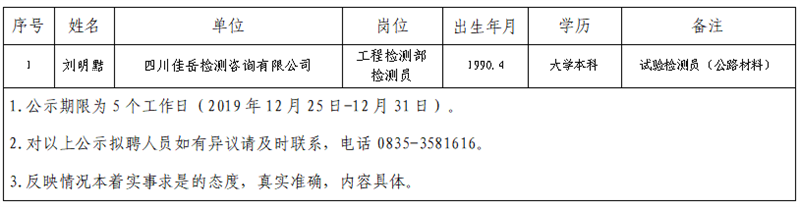 雅安交建集團(tuán)子公司擬聘用人員公示(佳岳公司)