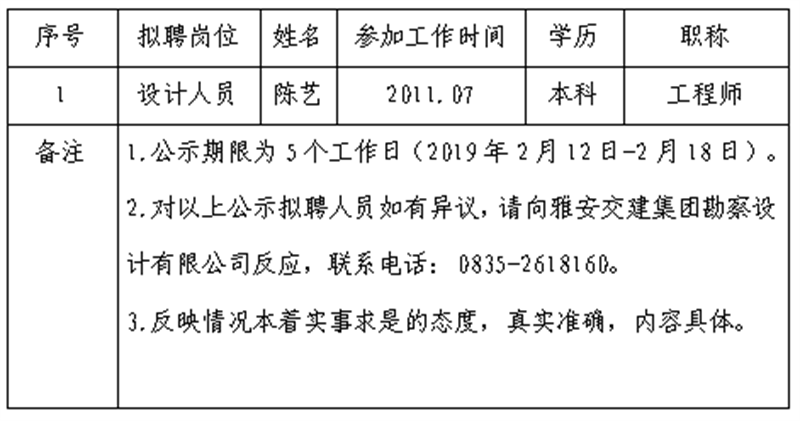 雅安交建集團(tuán)勘察設(shè)計(jì)有限公司擬聘用人員公示
