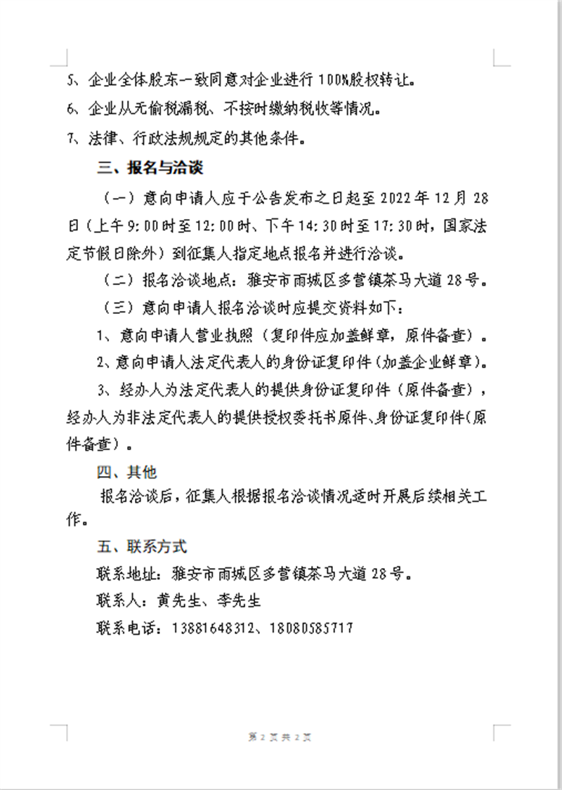 四川康藏路橋有限責(zé)任公司 股權(quán)收購事項(xiàng)征集公告