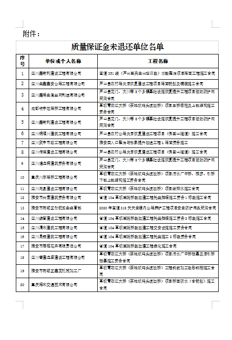 四川康藏路橋有限責(zé)任公司關(guān)于清退質(zhì)量保證金的公告