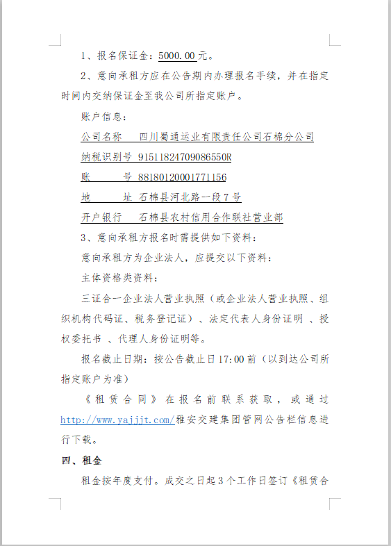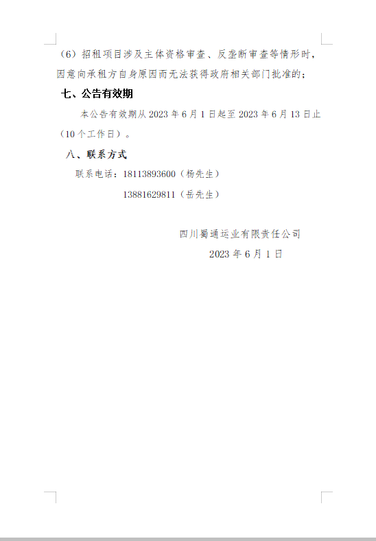蜀通運(yùn)業(yè)有限責(zé)任公司關(guān)于閑置資產(chǎn)公開招租的公告