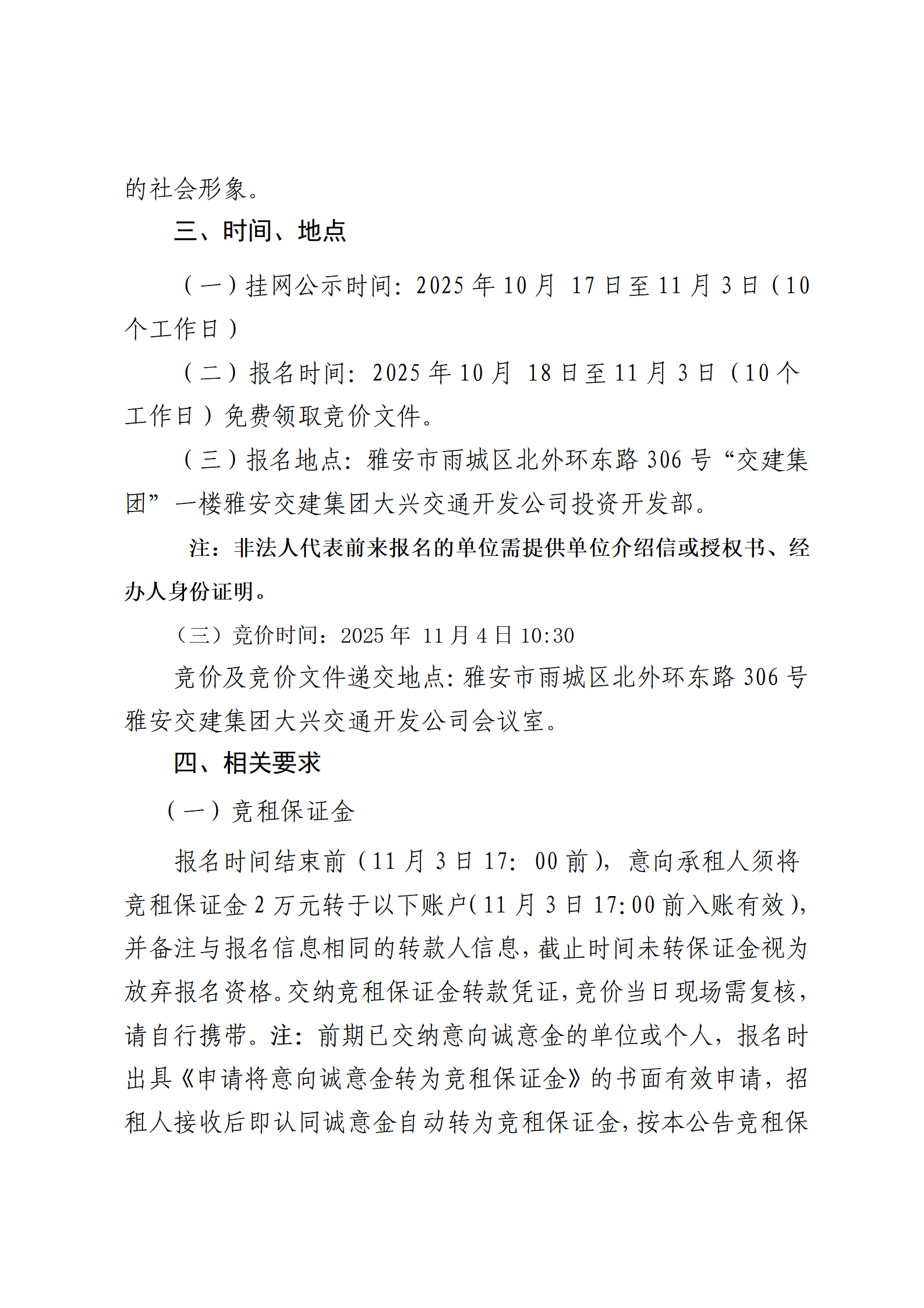 雅安交建集團(tuán)大興交通開發(fā)公司 雅安市城市綜合停車場姚橋綜合停車場及配套用房招租公告