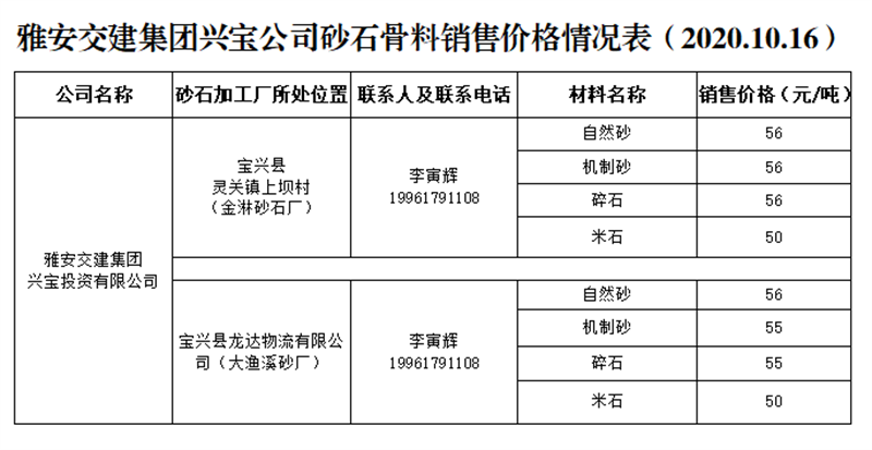 ÑŰ²½»½¨¼¯ˆF(tu¨¢n)ÅdŒš¹«Ë¾É°Ê¯¹ÇÁÏäN(xi¨¡o)ÊÛƒr(ji¨¤)¸ñÇé›r±í£¨2020.10.16£©