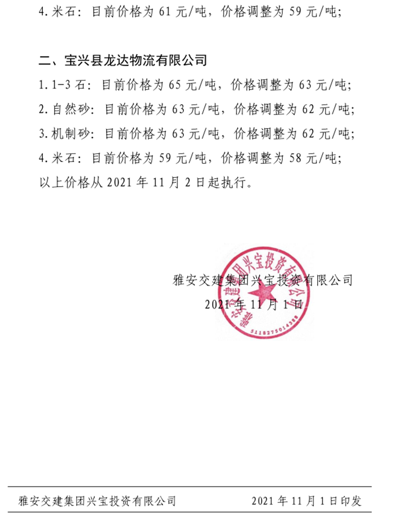 ÑŰ²½»½¨¼¯ˆFÔÆÊ¯¹«Ë¾êP(gu¨¡n)ÓÚÕ{(di¨¤o)Õû³ÉÆ·ÁÏäNÊÛƒr¸ñµÄ֪ͨ£¨2021.11.4£©