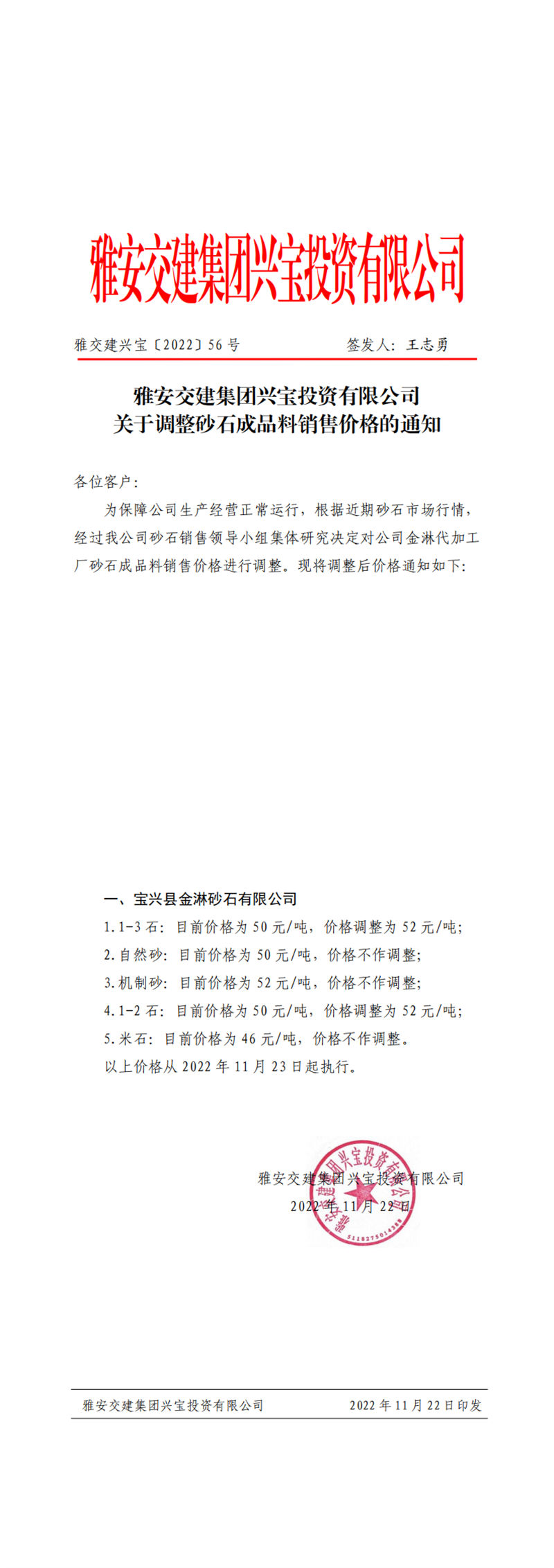 ÑŽ»½¨ÅdŒš¡²2022¡³56Ì–(h¨¤o) êP(gu¨¡n)ÓÚÕ{(di¨¤o)Õûɰʯ³ÉÆ·ÁÏäN(xi¨¡o)ÊÛƒr(ji¨¤)¸ñµÄ֪ͨ-11.22